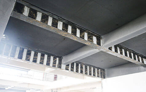 Carbon fiber reinforced polymer (CFRP) provides an economical and effective solution for strengthening flexural and shear concrete beams. This technology is suitable for reinforcing concrete, steel, wood and plywood beams.