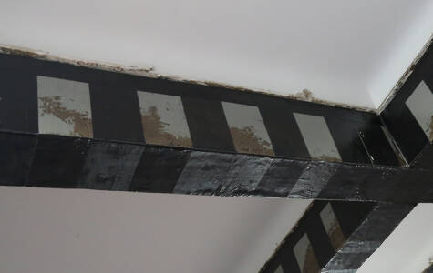 Furthermore, FRP fabric is pasted at the bottom of the floor with a certain spacing, so that some floors are covered by FRP, while others are not.